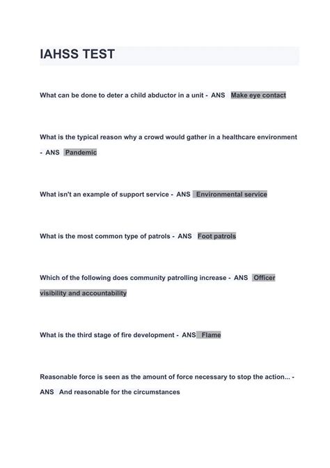 Free Read IAHSS SAMPLE TEST English PDF PDF